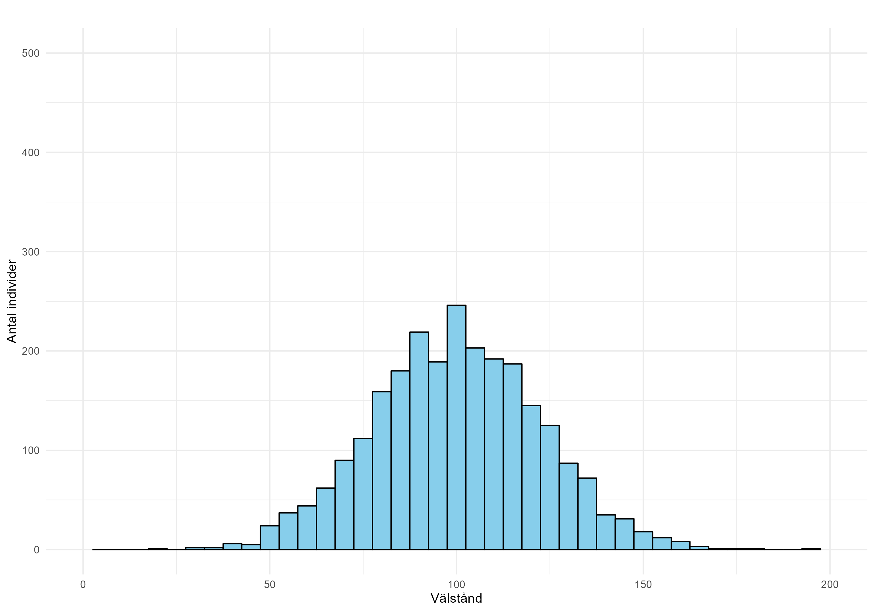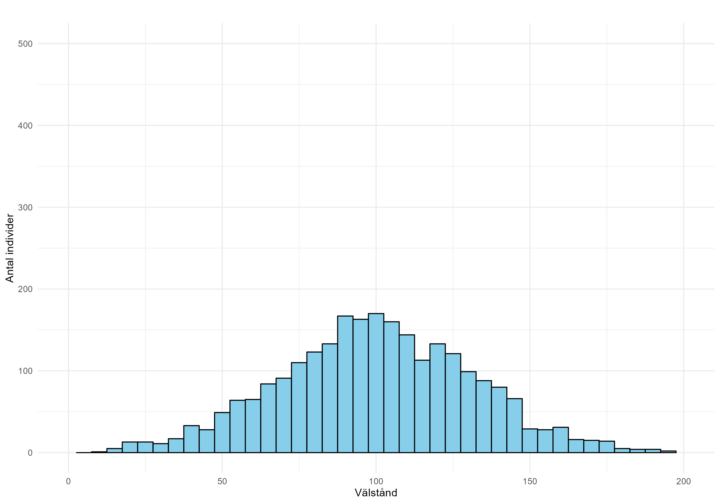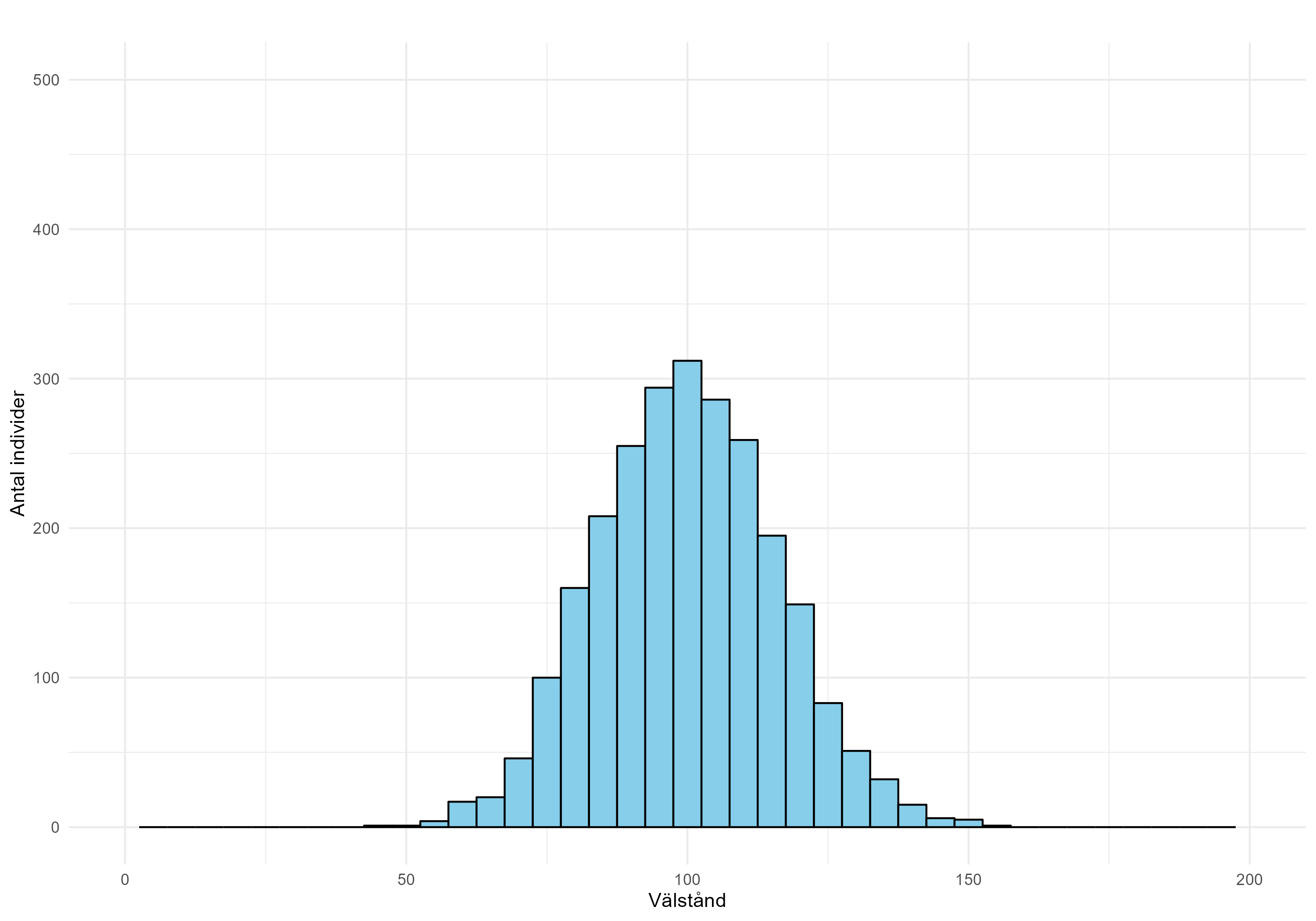 När alla sedan lämnar idrottsplatsen så redovisar de hur mycket pengar de har. Vissa har säkert kvar omkring 100 kronor, andra kanske har mer medan vissa har mindre. Fördelningen sammanställs i ett diagram.