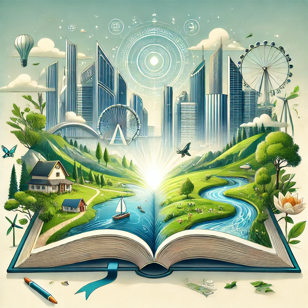 "Journey to the Future" är en roman av Guy Dauncey från 2015 som målar upp en optimistisk vision av framtiden. Samhället har naturligtvis inte övervunnit klimatkrisen men har kommit till större insikt och påbörjat den mödosamma vägen mot en hållbar och rättvis värld. Boken utspelar sig år 2032